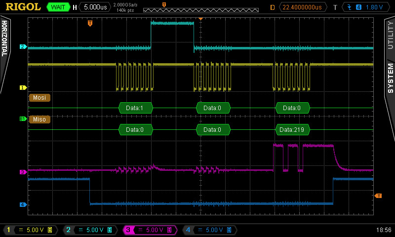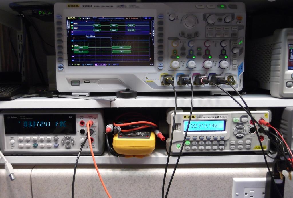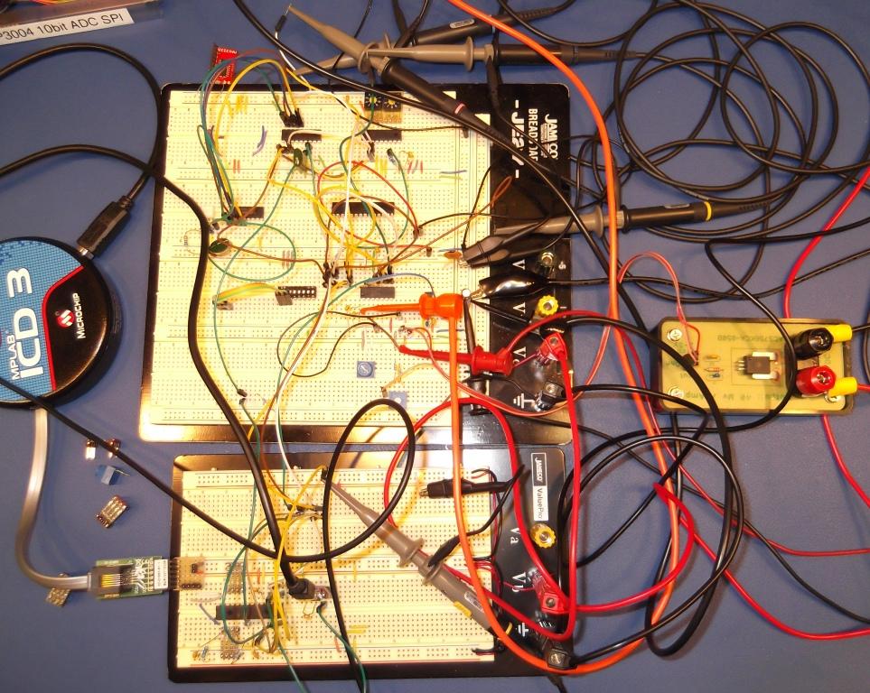 Here’s the main controller, on the breadboard, and the readings from the Vref and SPI ADC.