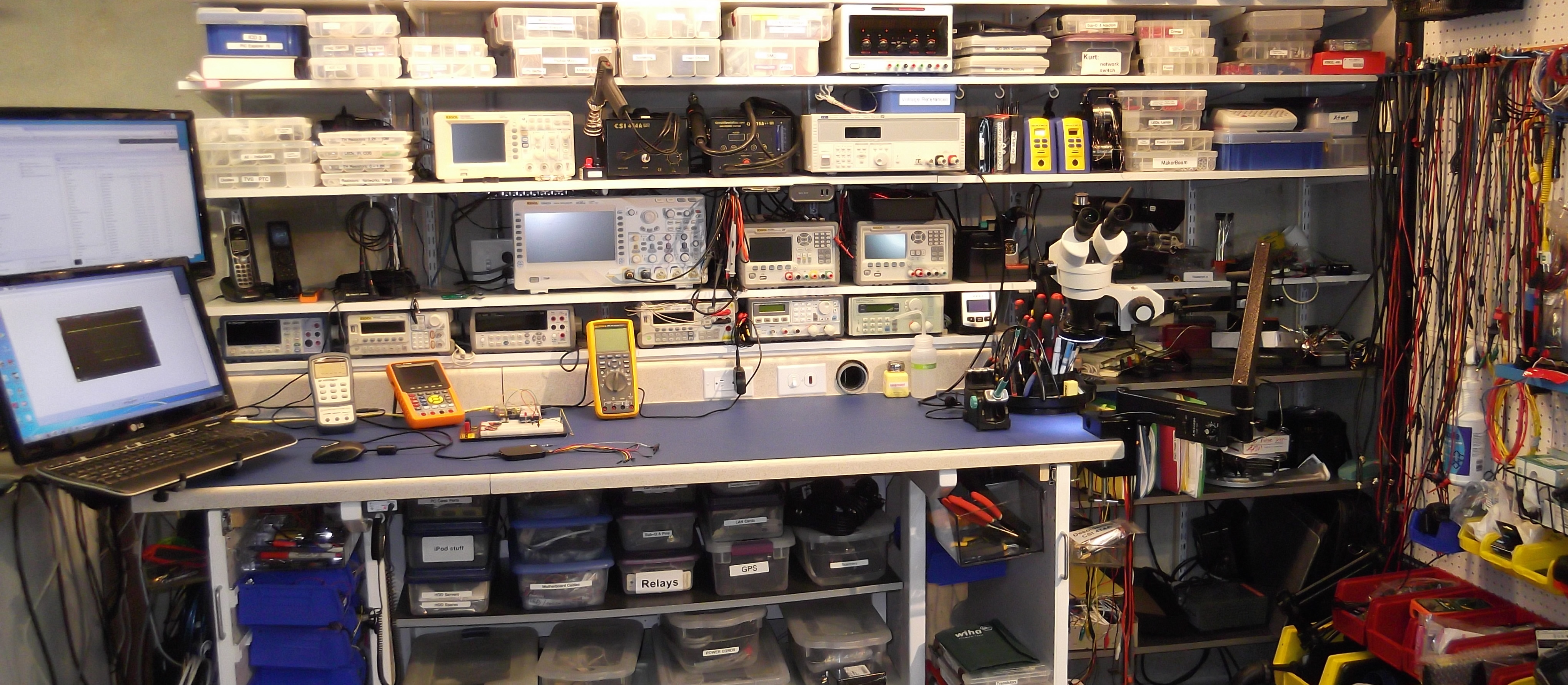 The electronics workbench… the bench itself, the tools, the layout, etc.